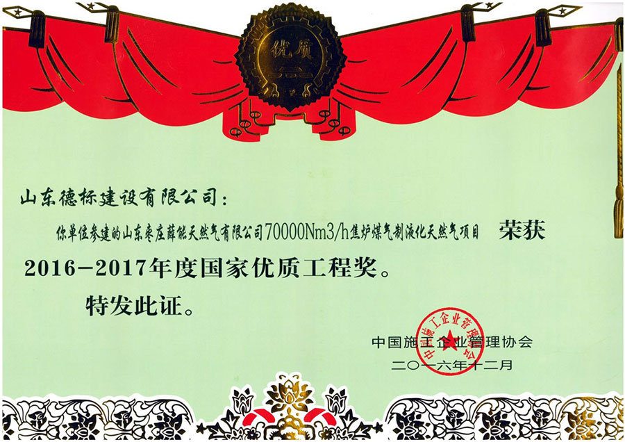 2016-2017年度國家優(yōu)質工程獎-焦爐煤氣制液化天然···