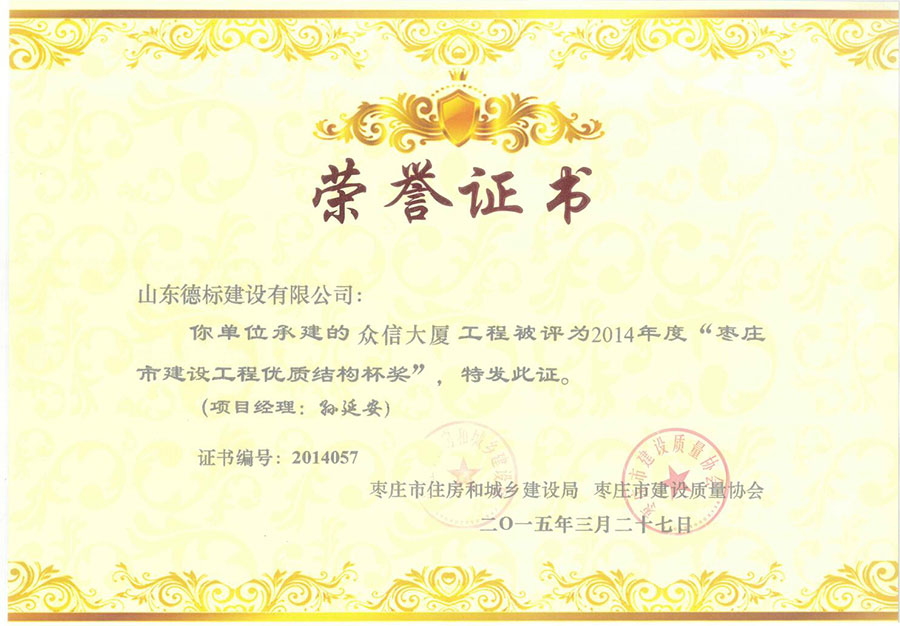2014年度市優(yōu)質結構-眾信大廈