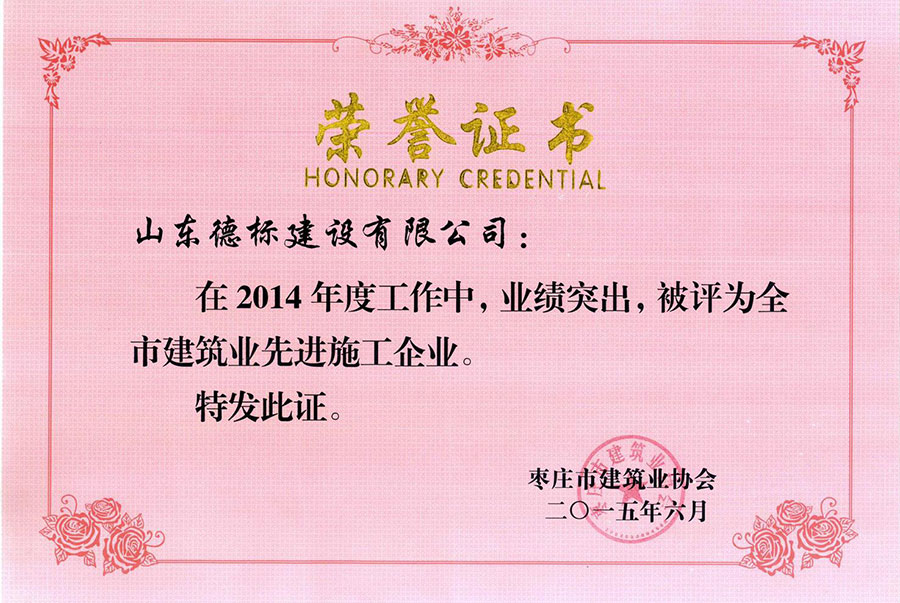 2016年度棗莊市建筑業(yè)先進企業(yè)