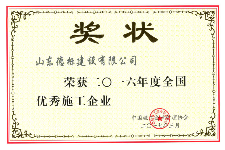 2016年度全國優(yōu)秀施工企業(yè)