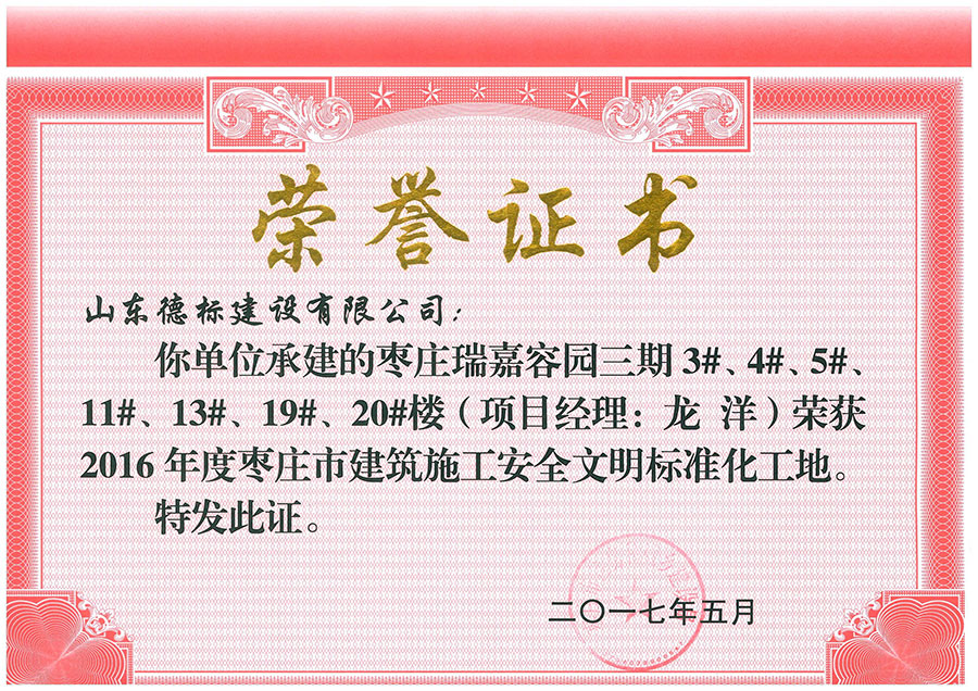 2017年度棗莊市建筑施工安全文明標準化工地-瑞嘉容園四···