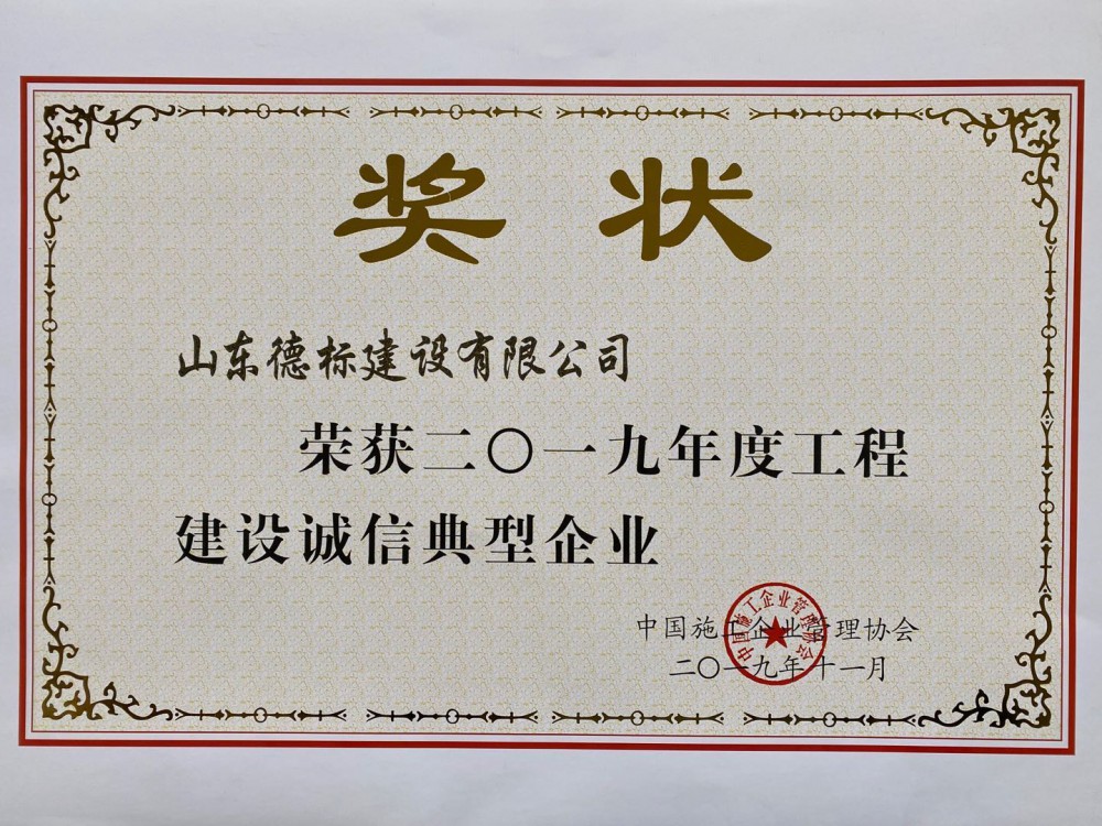 2019國家建設誠信優(yōu)秀企業(yè)